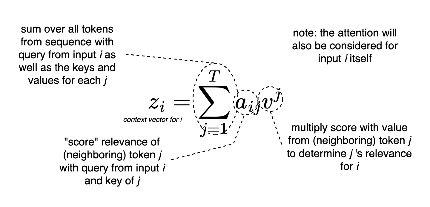 Fig. 8: Attention mechanism as a score to determine relevance of tokens from context