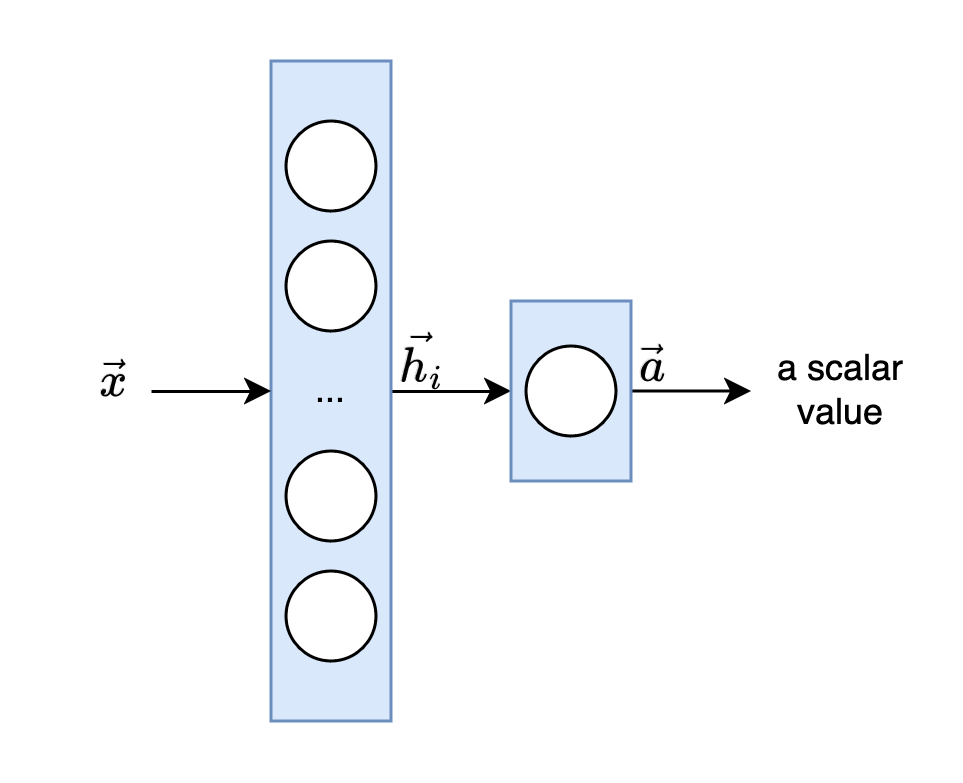 Fig. 1: A neural network with input \(x\), layer \(h_i\), and output layer \(a\)
